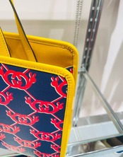 新品・正規品のGUCCIチルドレンズトートバッグは、鮮やかなブルーとレッドのコンビネーションが際立つデザインです。宇宙家族ジェットソンの人気GGプリントが施されており、ユニークで遊び心あふれる仕上がりになっています。広々としたサイズ感は、お子様のお出かけやお買い物、普段使いにぴったり。おしゃれさと実用性を兼ね備えたアイテムです。どんなシーンでもあなたのスタイルを引き立てます!