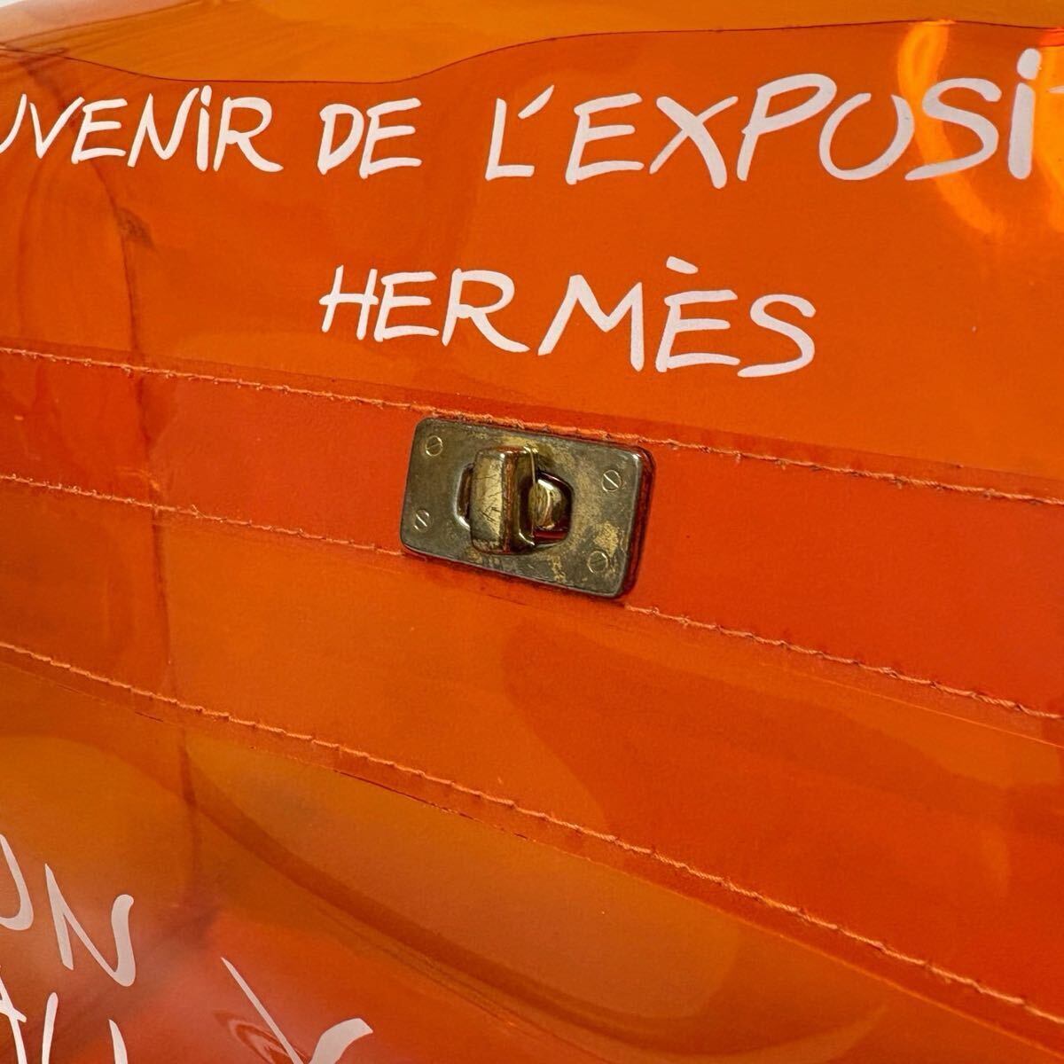 HERMES エルメス ビニール ケリー ハンドバッグ クリア オレンジ スケルトン ゴールド金具 限定品モデル ビニール PVCトートバッグ